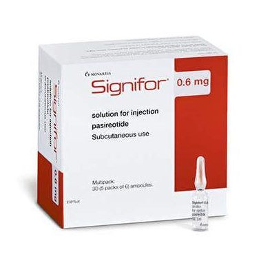 Pasireotide injection (Signifor and Signifor LAR) is used to treat Cushing’s disease (an abnormal condition that is caused by excess hormones [cortisol]) in adults who cannot be treated with surgery or who did not respond to surgery. Pasireotide injection (Signifor LAR) is also used to decrease the amount of growth hormone (a natural substance) produced by people with acromegaly (condition in which the body produces too much growth hormone, causing enlargement of the hands, feet, and facial features; joint pain; and other symptoms) who cannot be treated with surgery or who did not respond to surgery. Pasireotide injection is in a class of medications called somatostatin agonists. It works by decreasing the amounts of cortisol produced by the body.