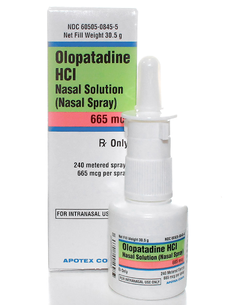 - Tell your doctor and pharmacist if you are allergic to olopatadine, any other medications, or any of the ingredients in olopatadine nasal spray. Ask your pharmacist for a list of the ingredients.