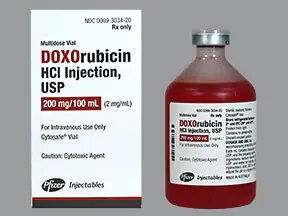 Doxorubicin is used in combination with other medications to treat certain types of bladder, breast, lung, stomach, and ovarian cancer; Hodgkin’s lymphoma (Hodgkin’s disease) and non-Hodgkin’s lymphoma (cancer that begins in the cells of the immune system); and certain types of leukemia (cancer of the white blood cells), including acute lymphoblastic leukemia (ALL) and acute myeloid leukemia (AML, ANLL). Doxorubicin is also used alone and in combination with other medications to treat certain types of thyroid cancer and certain types of soft tissue or bone sarcomas (cancer that forms in muscles and bones). It is also used to treat neuroblastoma (a cancer that begins in nerve cells and occurs mainly in children) and Wilms’ tumor (a type of kidney cancer that occurs in children). Doxorubicin is in a class of medications called anthracyclines. It works by slowing or stopping the growth of cancer cells in your body.